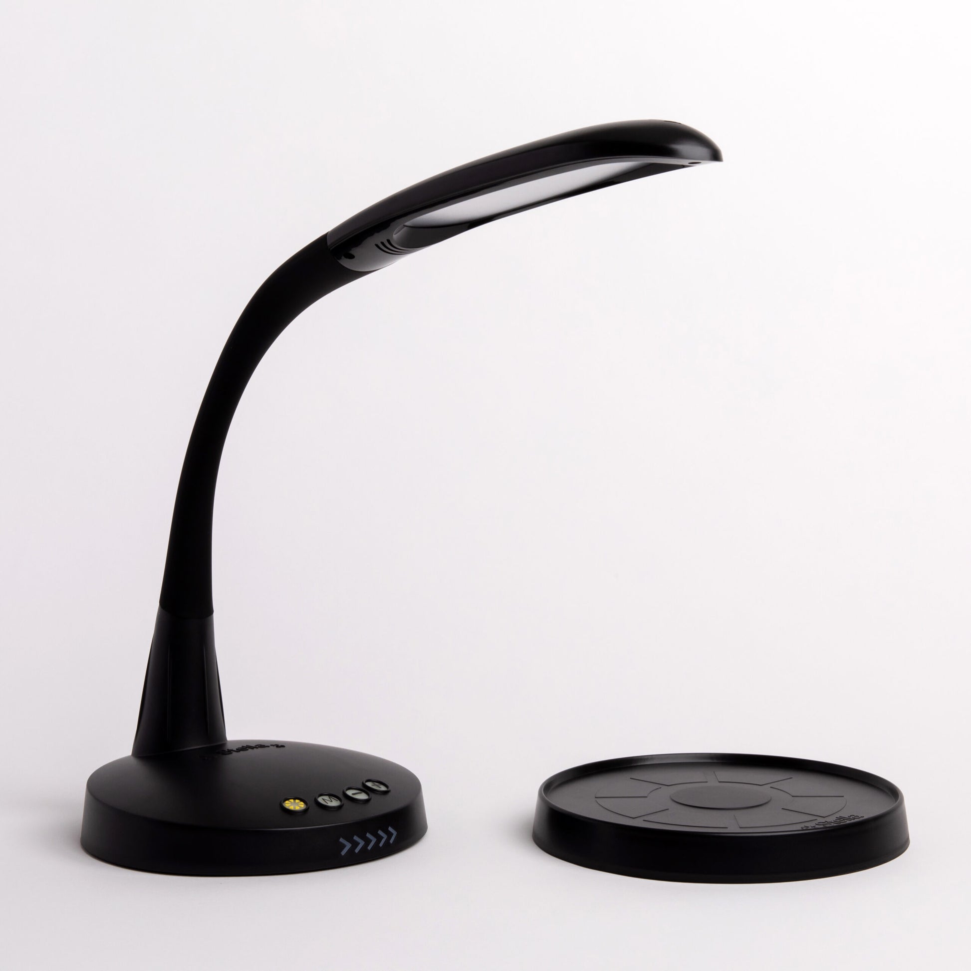 Just like your favorite Stella lamps, the Stella GO features tri-spectrum technology, giving the user the ability to change from a warm, natural, or cool light, 10-level dimming, minimal heat, and low wattage consumption. The flexible neck allows for maximum adjust-ability. The charging pad also features a USB charging port with a three prong charger included (USB, USB type C, Lighting cable). The Stella GO comes with one charging pad. Multiple pads can be used for additional charging areas around the home or workplace. Weighs 4 lbs.